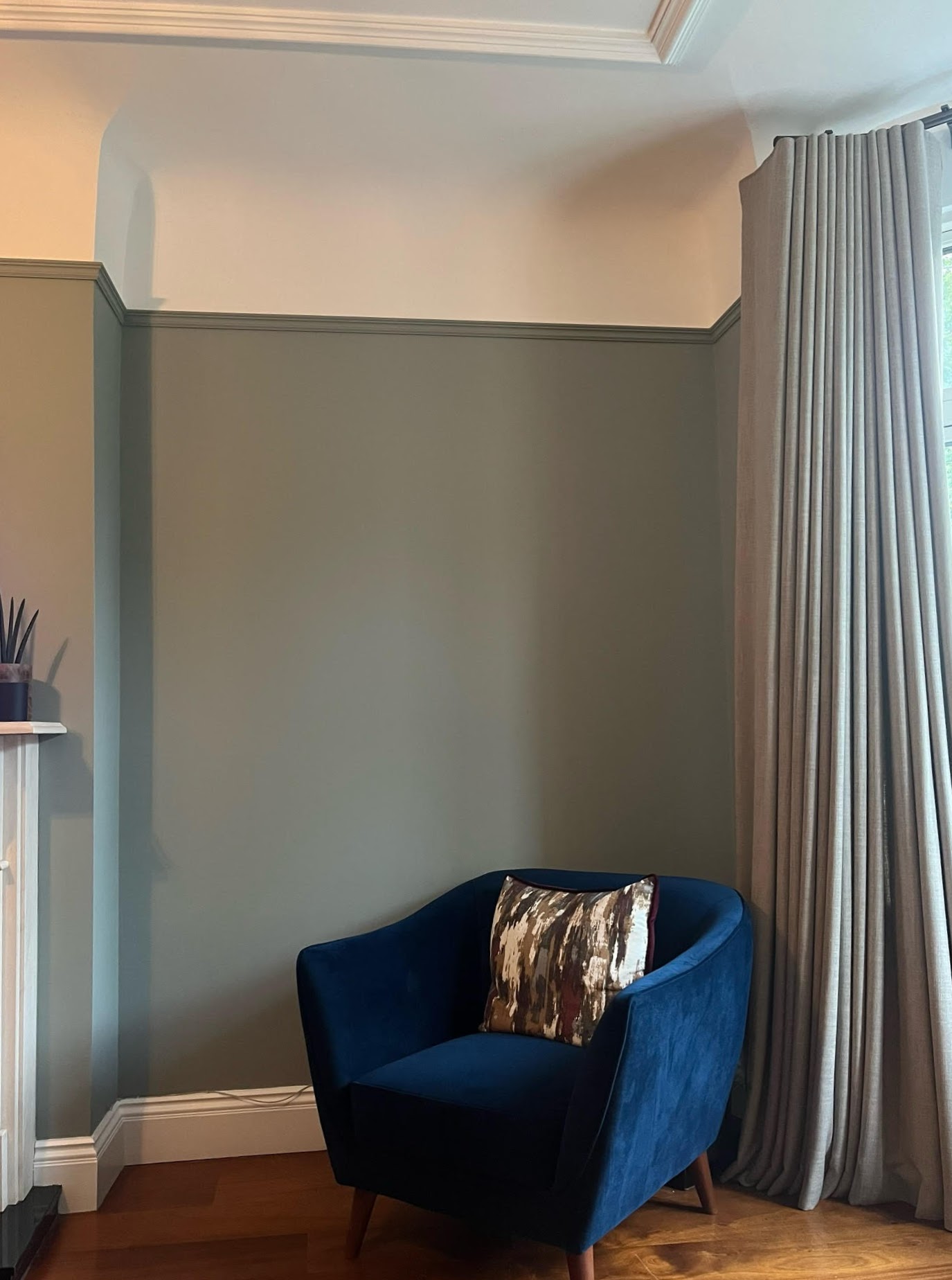 Tuileries is a captivating paint colour that marries the subtlety of a soft green with the sophistication of grey undertones. This hue brings a whisper of nature indoors, offering a versatile and calming backdrop that effortlessly complements various design styles.